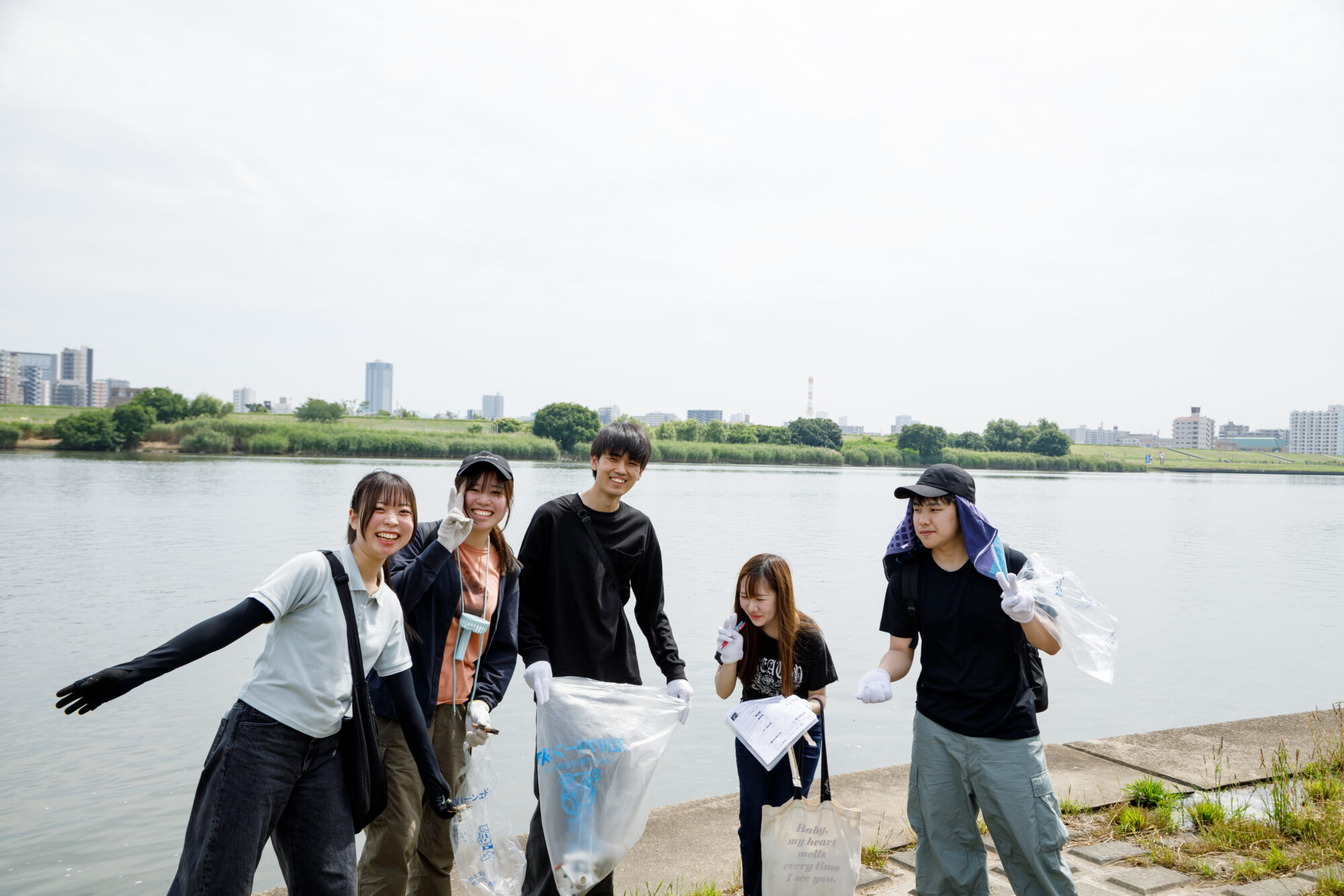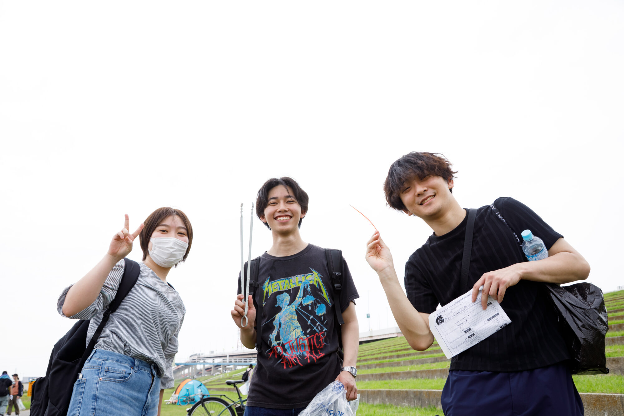武蔵大学のチームも普段からボランティア活動を積極的に行っていると教えてくれました。「街中に比べてこういう広い場所はゴミが拾いやすいです。また参加したいです」と笑顔を見せます。日本工業大学のメンバーにも話を聞くと、学生環境推進委員会に所属のメンバーが多いと教えてくれました。「サークルは今70名くらい。川沿いはゴミが目立つ印象です。ペットボトルなどは川上から流れてきたものだと思います。でもとても楽しい」と話しました。