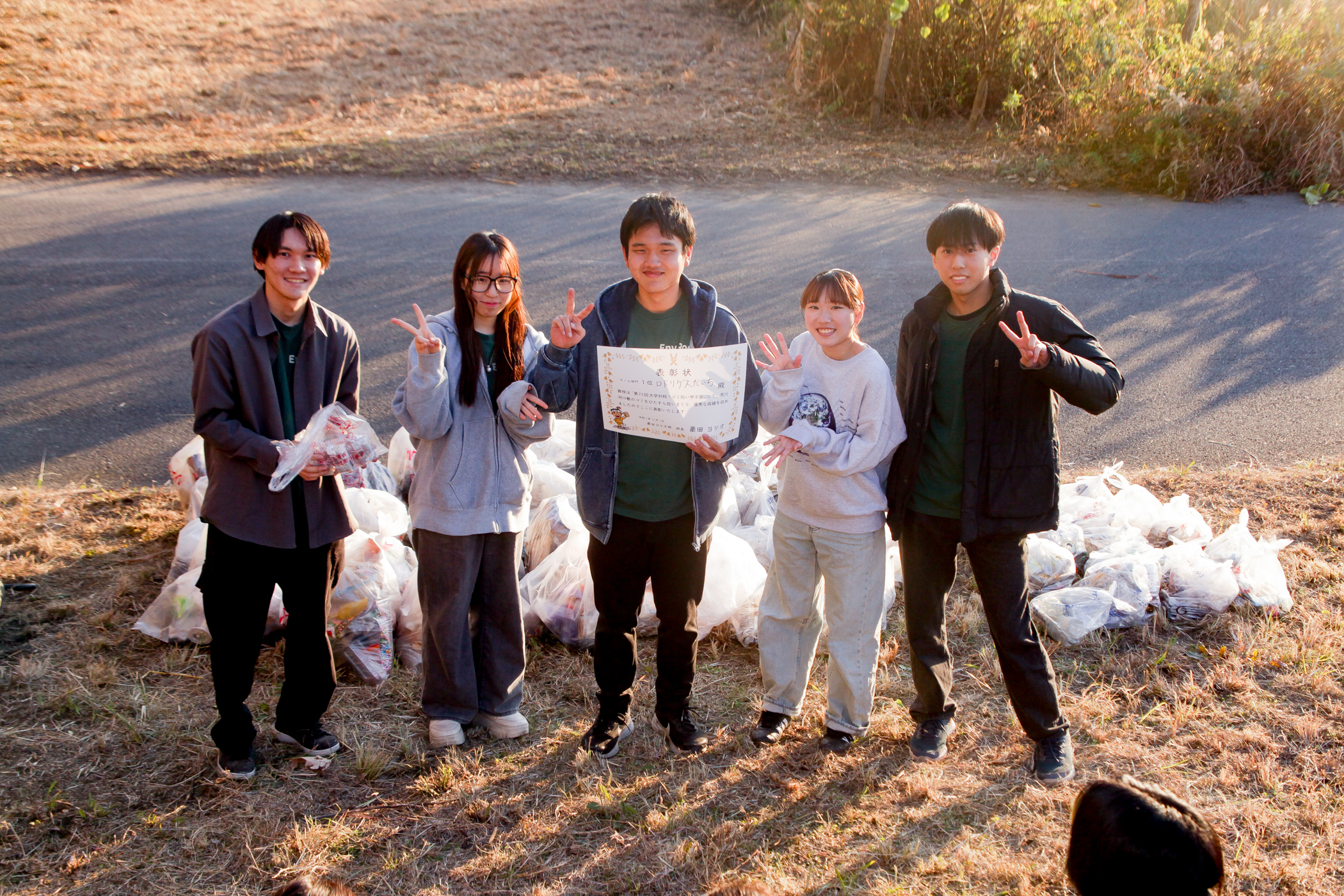 チーム1位は、「早稲田大学 ロドリゲスだいち」でした!こちらは5人で2524ポイントを獲得しました。メンバーそれぞれがとても嬉しそうな表情で、表彰状を受け取った後は、仲良く記念撮影にも応じました。初参加の環境ロドリゲスが早くも結果を出し、今後の参加や、イベントに新しい風を吹き込む役割を担う期待を抱かせてくれます。