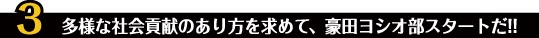 「えーと、考えてなかった。……社会貢献部っていうのも、なんか善人ヅラな感じでイヤだよなあ……、じゃあひとまず『豪田ヨシオ部』ってことでw」